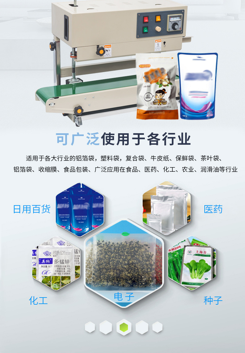 - 適用范圍廣:可用于各種塑料薄膜、鋁箔復合膜等包裝材料的封口,適用于不同行業和產品的包裝需求,如食品、醫藥、日化、五金等25.