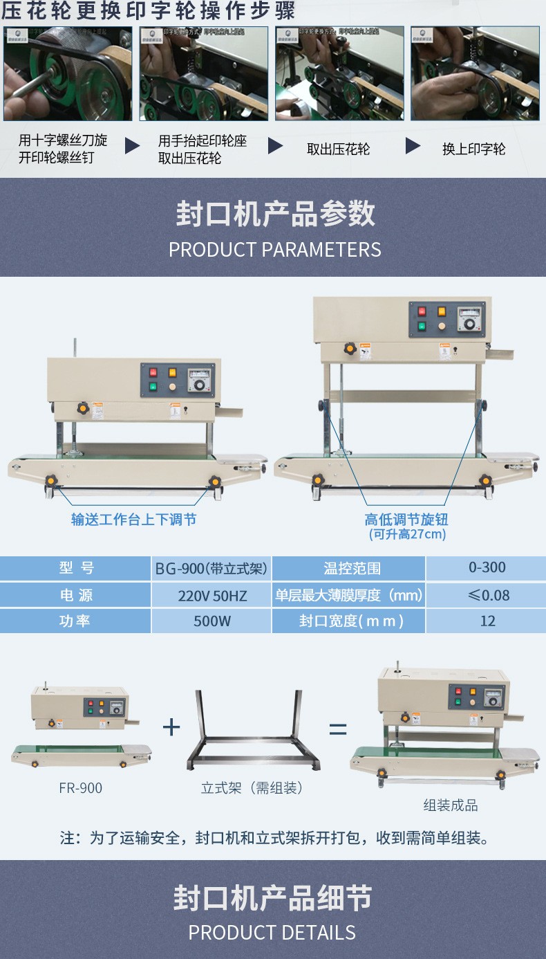 定義與概述- 連續(xù)式封口機是一種能夠對包裝材料進行不間斷封口操作的設備。它主要應用于各種需要大量包裝的行業(yè),如食品、醫(yī)藥、日化、化工等。通過機械傳動和熱封原理,使包裝材料在連續(xù)輸送過程中完成封口,大大提高了包裝的效率。