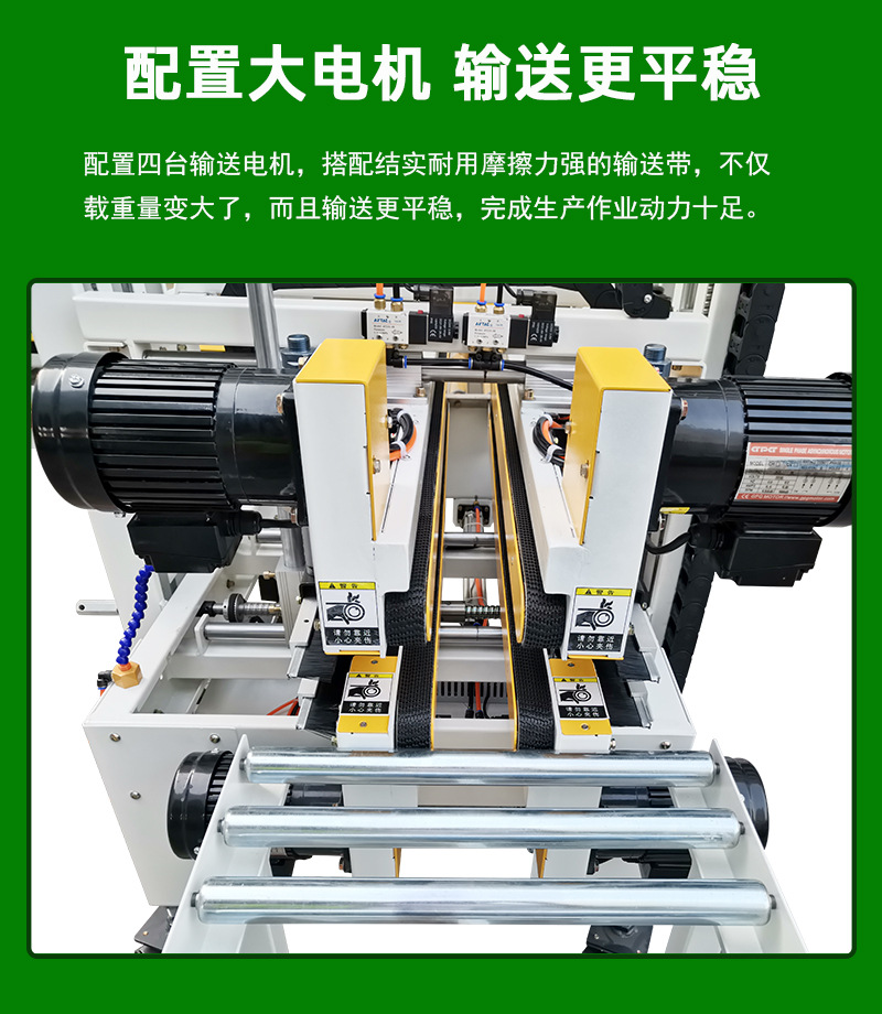 - 適應性強:得益于調節裝置,能夠輕松應對不同大小、長寬高各異的紙箱,滿足多樣化的包裝需求,減少了因紙箱規格變化而頻繁更換設備的麻煩。