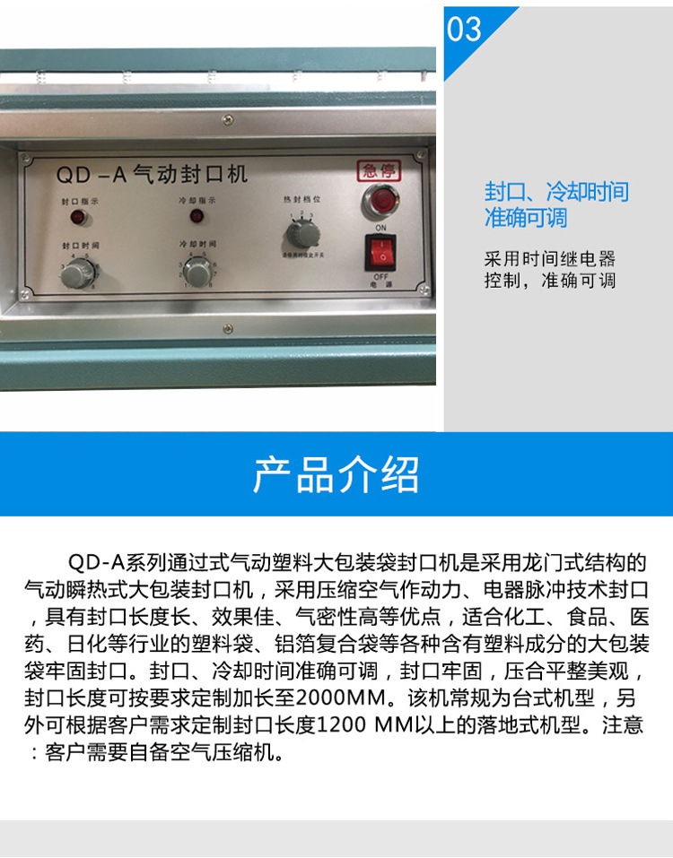 相反,當面對較厚的包裝材料,像是多層復合膜或較厚的塑料材質(zhì)時,較低的氣壓無法讓封口模具有效壓緊材料,會導致封口不牢。這種情況下,需要提高氣壓,使氣缸推動封口模具產(chǎn)生足夠的下壓力,確保包裝材料的各個層面緊密貼合。同時,適當延長封口時間,給予加熱元件充足時間將熱量傳遞至材料內(nèi)部,使內(nèi)層材料也能充分熱熔,進而形成牢固且密封良好的封口。