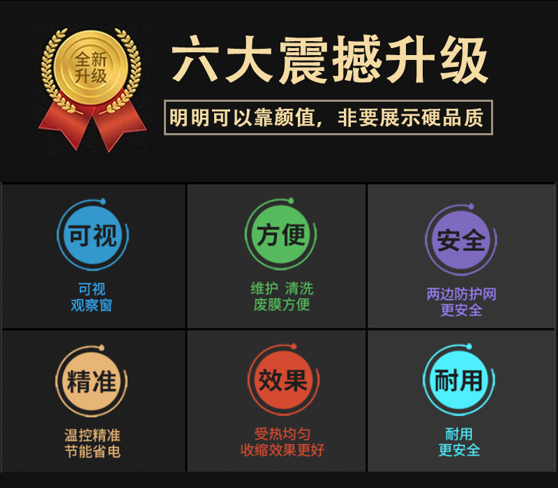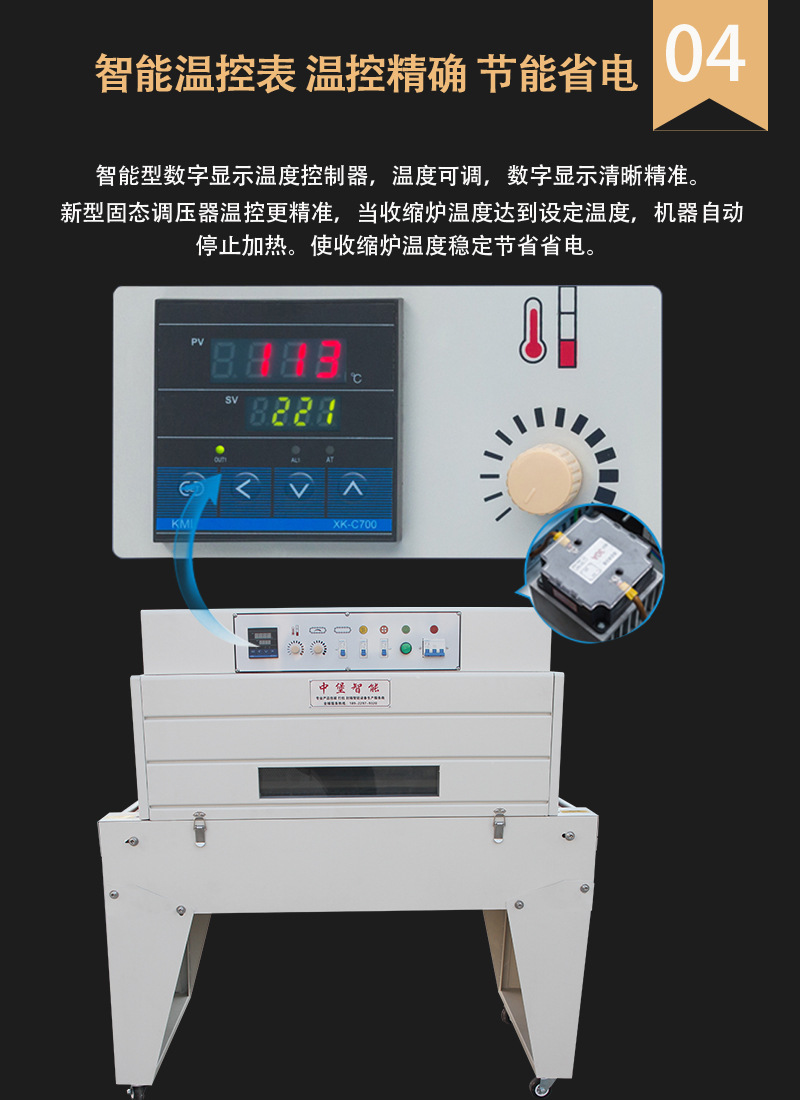 工作時,產(chǎn)品放置在鏈條上,隨著鏈條的移動進(jìn)入加熱區(qū)域。加熱區(qū)域產(chǎn)生高溫,使包裹產(chǎn)品的熱收縮膜受熱收縮,從而緊密貼合在產(chǎn)品表面,達(dá)到包裝的目的。