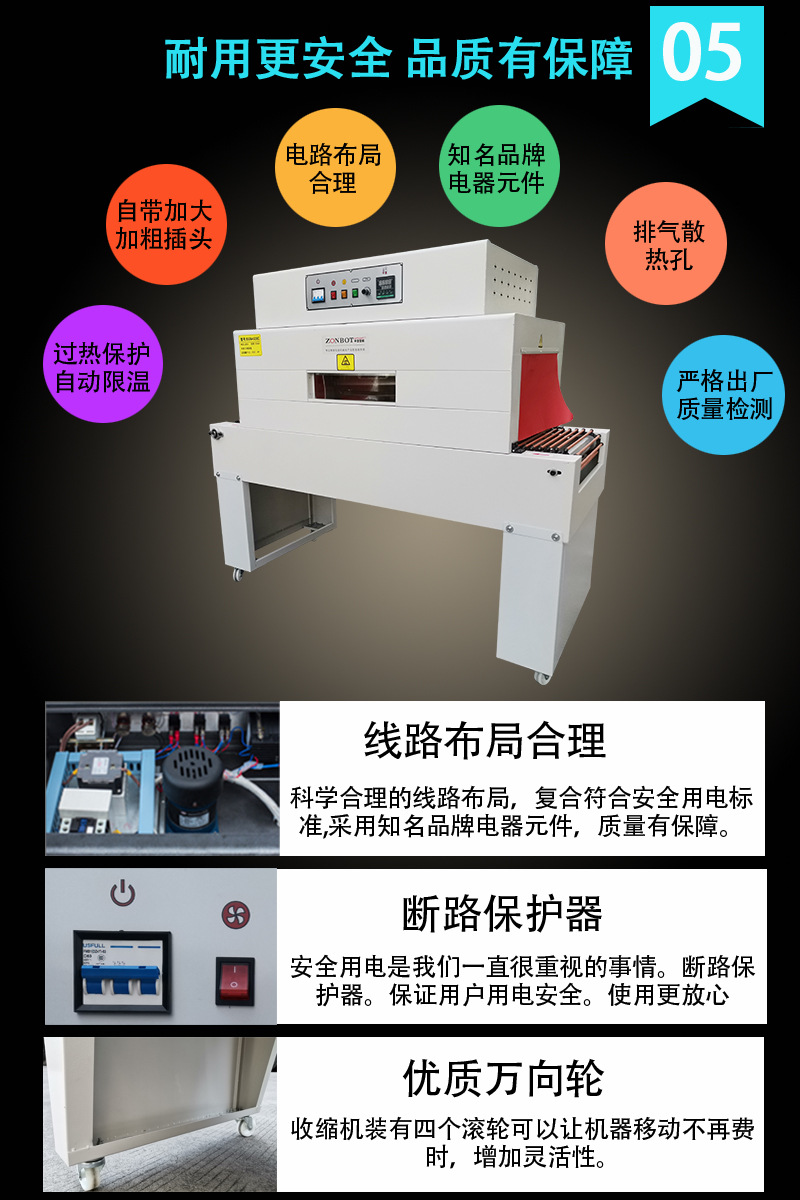 - 加熱系統:包括加熱元件、溫度控制器等,負責產生熱量并控制加熱溫度,確保收縮膜能夠在合適的溫度下進行收縮。