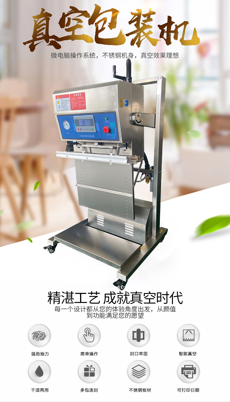 立式外抽真空包裝機除了在食品肉類的應用,還可以用于化工產品、紡織品、五金制品等的包裝,滿足不同行業的包裝需求