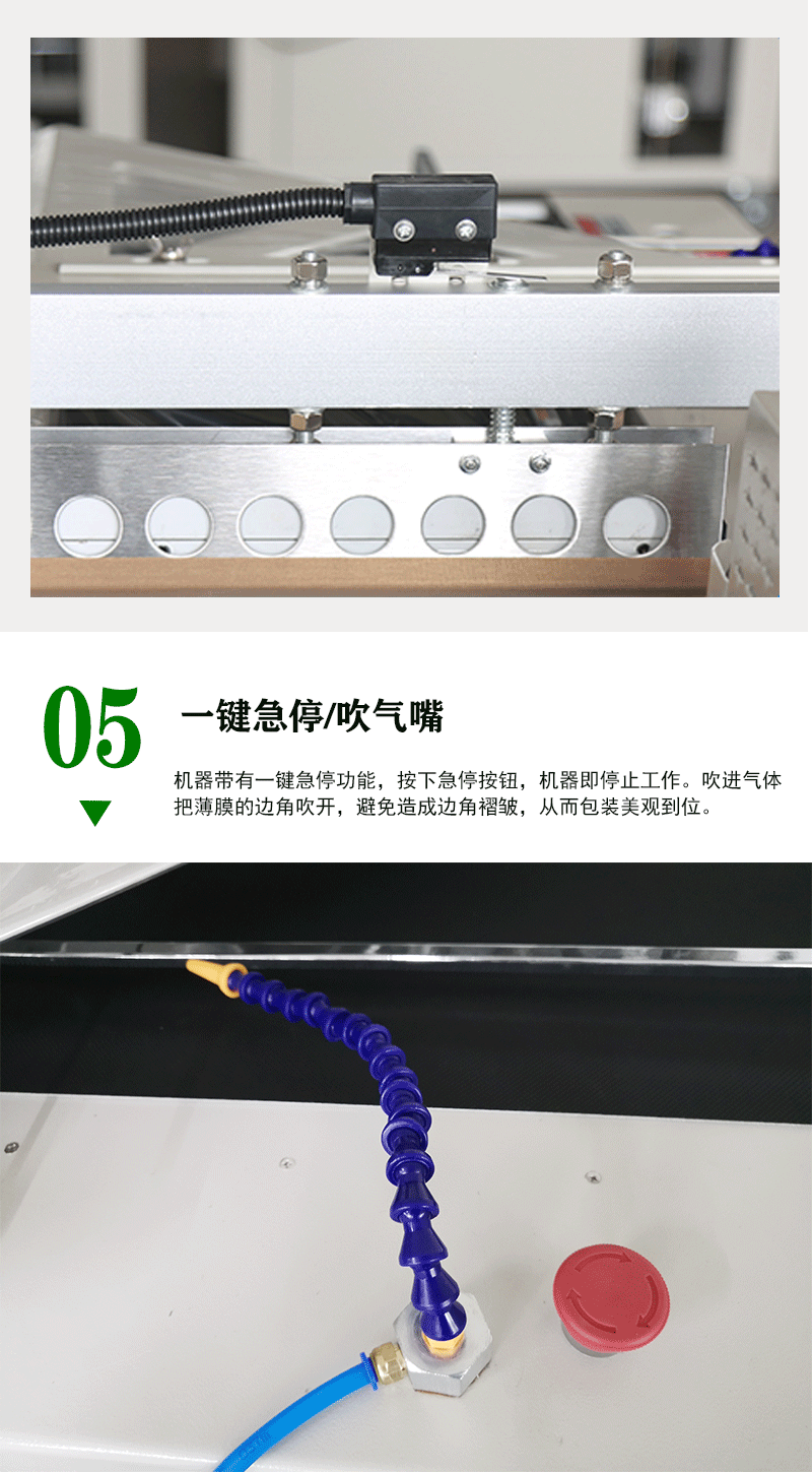 - 通過光電傳感器等設備對物品的位置、姿態等進行實時監測和精準定位。當物品到達預定位置時,會及時向控制系統發送信號,觸發后續的薄膜套膜、封切等操作,確保整個包裝過程的準確性和連貫性。