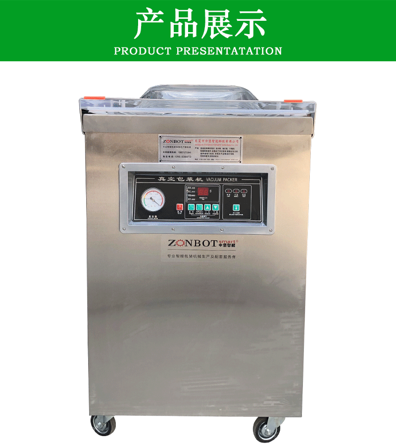 - 憑借精確的封口裝置,單室內抽真空包裝機可以制作出密封牢固、外觀整齊的封口。封口強度高,能夠承受一定的壓力和摩擦,在產品運輸和儲存過程中不會輕易漏氣。
