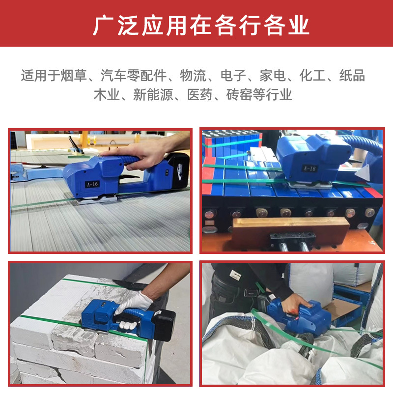 - 可以使用多種類型的打包帶,包括 PP(聚丙烯)打包帶、PET(聚對(duì)苯二甲酸乙二醇酯)打包帶等。并且能適應(yīng)不同寬度和厚度的打包帶,一般可以處理寬度在 5 - 16mm 之間的打包帶,滿足各種包裝需求。