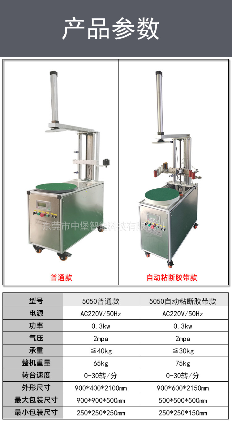 - 普通膠帶纏繞機:基本功能就是將膠帶纏繞在貨物上,功能較為單一,設置參數也相對簡潔,主要滿足常規包裝需求。