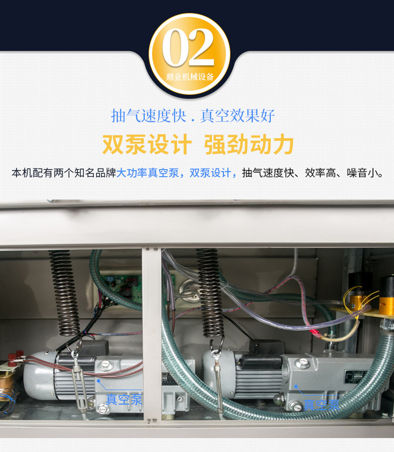 雙室內(nèi)抽真空包裝機利用真空泵將兩個真空室內(nèi)的空氣抽出,使包裝袋內(nèi)形成真空環(huán)境,然后進行封口操作,從而達到保鮮、防潮、防氧化等目的 457。