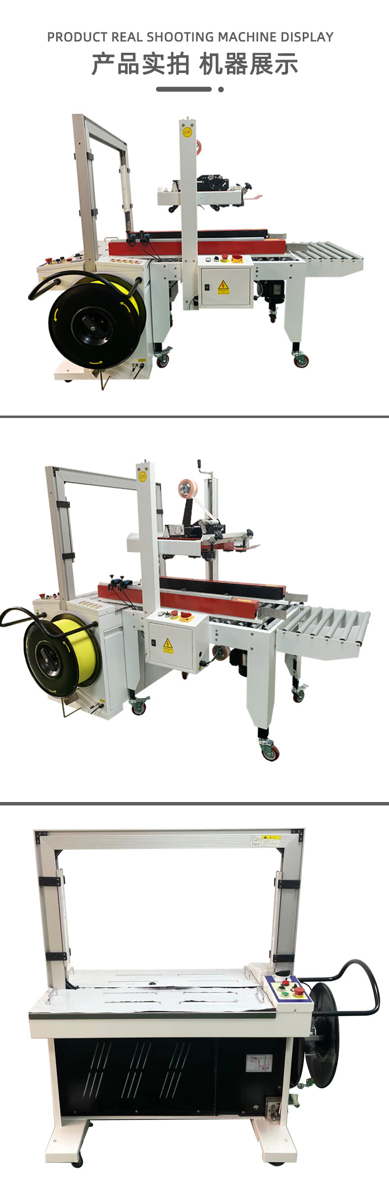 - 隨著電子商務的迅猛發展,電商企業每天都要處理大量的訂單。封箱打包一體機可以快速地對各種尺寸的商品包裝箱進行封箱和打包,適應不同類型商品的包裝需求,如服裝、日用品、小型電子產品等。而且,一體機的高效性能可以幫助電商企業在促銷活動等訂單高峰期快速完成包裝發貨,提高客戶滿意度。