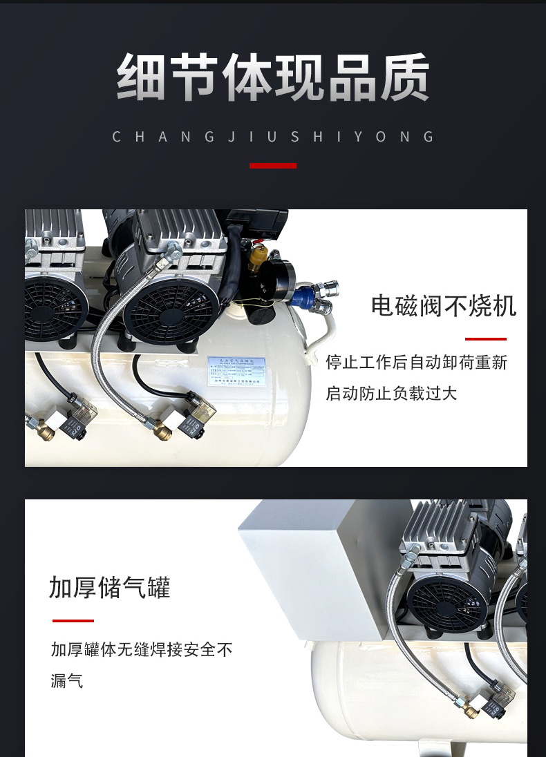 - 壓縮過程:活塞向上運動,氣缸容積減小,空氣被壓縮,壓力升高。由于采用特殊的活塞環和氣缸材料,如聚四氟乙烯等自潤滑材料,活塞與氣缸之間形成良好的密封和潤滑,無需潤滑油,就能保證壓縮過程的順利進行。