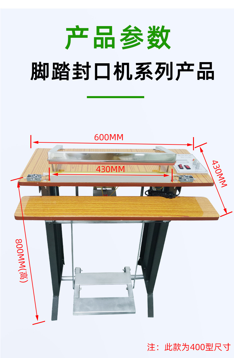 - 操作簡便:只需人工放好袋子或容器,用腳踩下腳踏開關(guān),即可自動完成封口動作,降低了操作人員的勞動強度。
