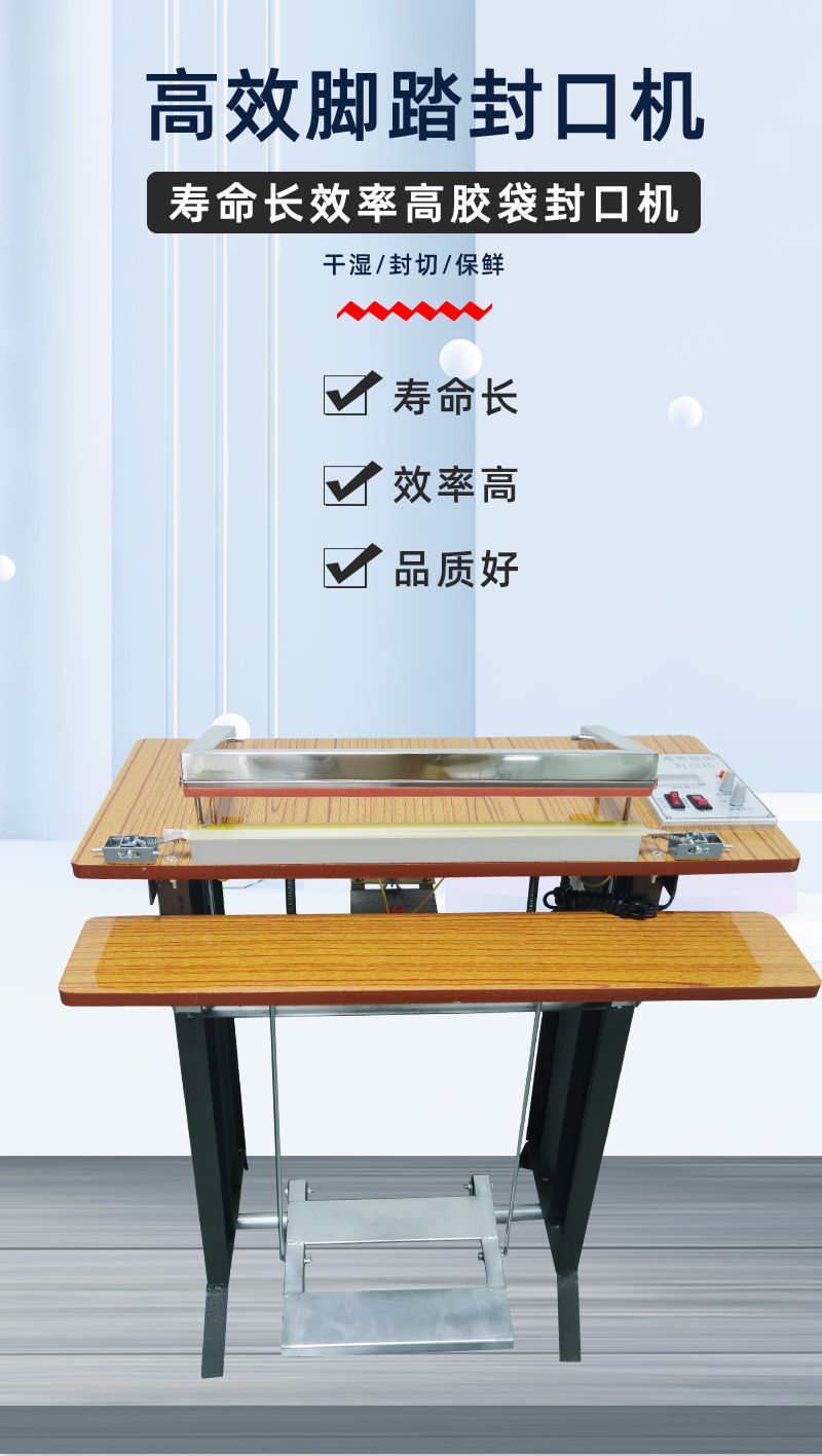 腳踏封口機是一種通過腳踏板控制封口動作的包裝設備,主要用于各種塑料袋、鋁箔袋、復合袋等的封口作業(yè)