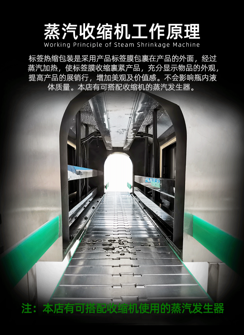 蒸汽收縮機是一種設計精巧、外型美觀的設備,具有不占空間、移動和安裝迅速快捷的特點,以及超大范圍的調節能力,使其能夠適用于各種輸送帶和滑道。這種機器通過吸收國外先進技術并結合國內現狀,能夠自動收集、整理、堆放各種包裝材料,克服了國內同類機器容易震動的堆疊不穩定、易卡、不適應重量輕、體積小的小盒產品的缺點,拓寬了機器在包裝領域的適應性和能力。此外,蒸汽收縮機的整機電氣元件全部采用日本三菱、歐姆龍制造,設備運行穩定可靠,受到相關行業客戶的好評。它可以單獨完成小盒的中間包裝,也可以連接前端的套膜機和后端的裝盒機,不需要增加特殊的機械裝置。包裝后的產品外觀光滑整齊,包裹嚴密,焊接牢固。