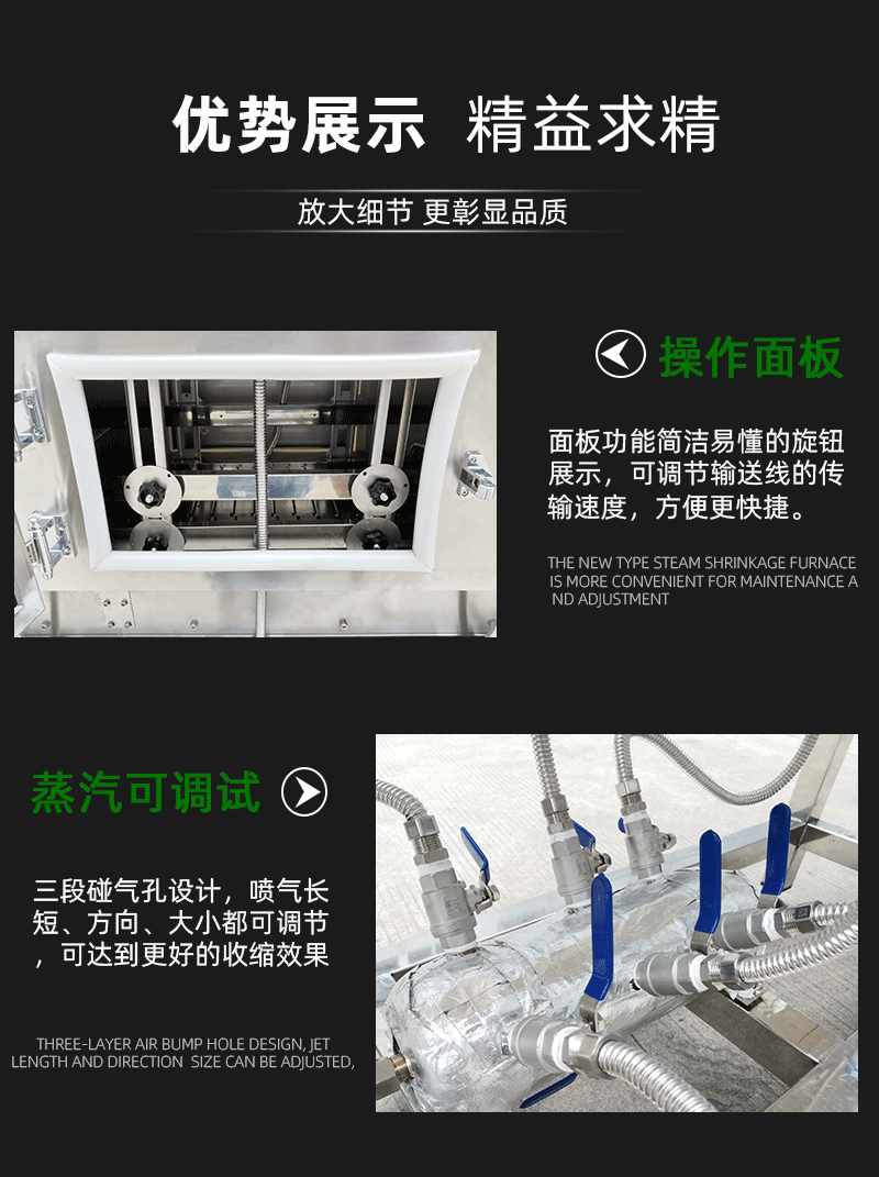 - 控制系統(tǒng):用于調(diào)節(jié)蒸汽溫度、輸送速度等參數(shù),以滿足不同產(chǎn)品的包裝需求。