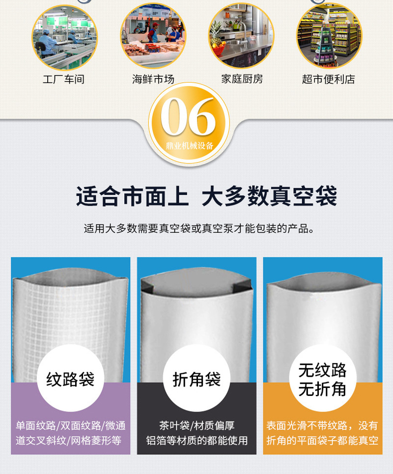 - 不僅適用于食品行業,如肉類、水果、蔬菜、熟食等的包裝,還廣泛應用于電子、化工、五金等行業,對各類產品進行真空保護包裝。