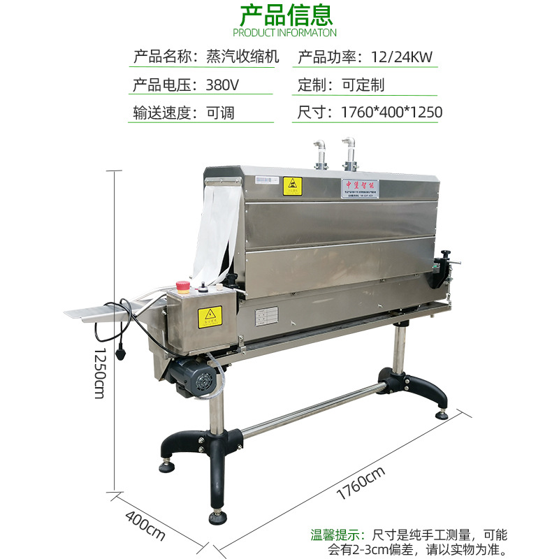 它利用蒸汽作為熱源,通過加熱使包裝材料收縮,從而緊密貼合在被包裝的產品表面。
