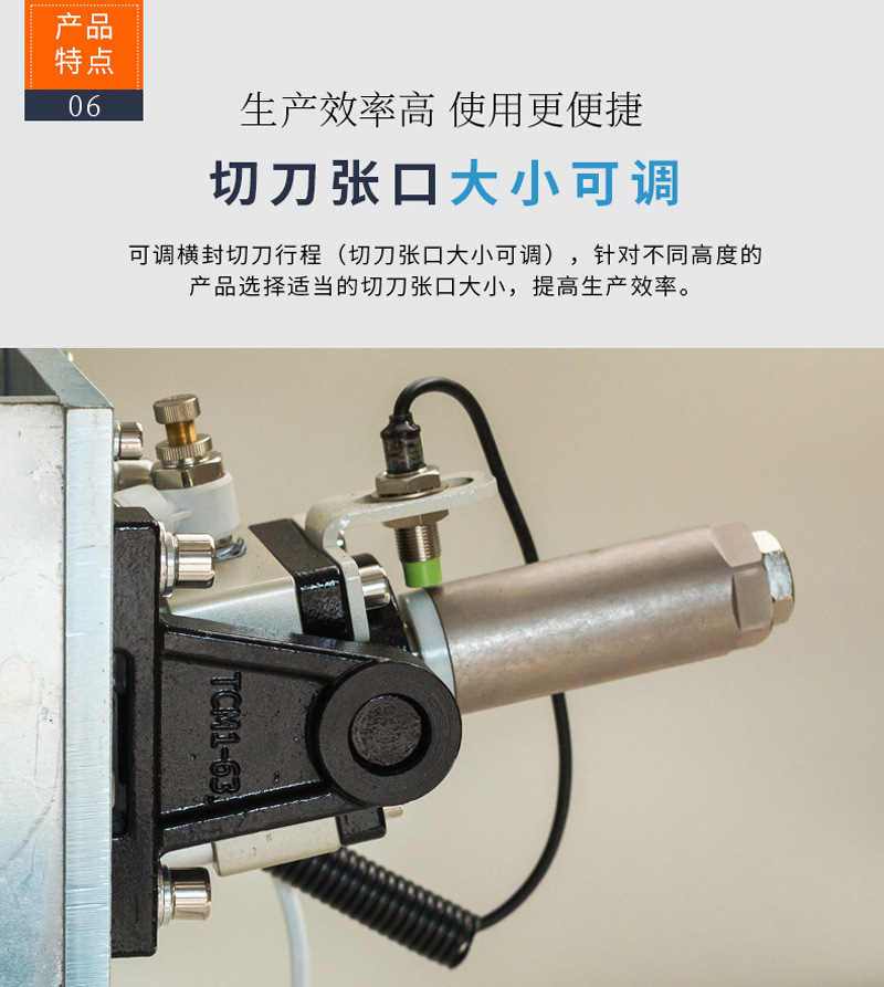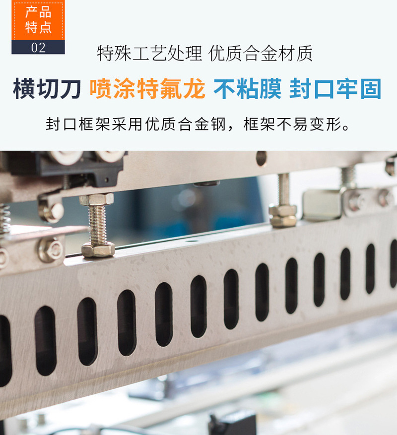 - 封切系統:對包裝膜進行熱切封口和切斷。封切系統通常由加熱元件、刀具和壓力裝置組成。加熱元件將包裝膜加熱至熔化狀態,然后刀具在壓力的作用下將包裝膜切斷并封口,形成獨立的包裝單元。