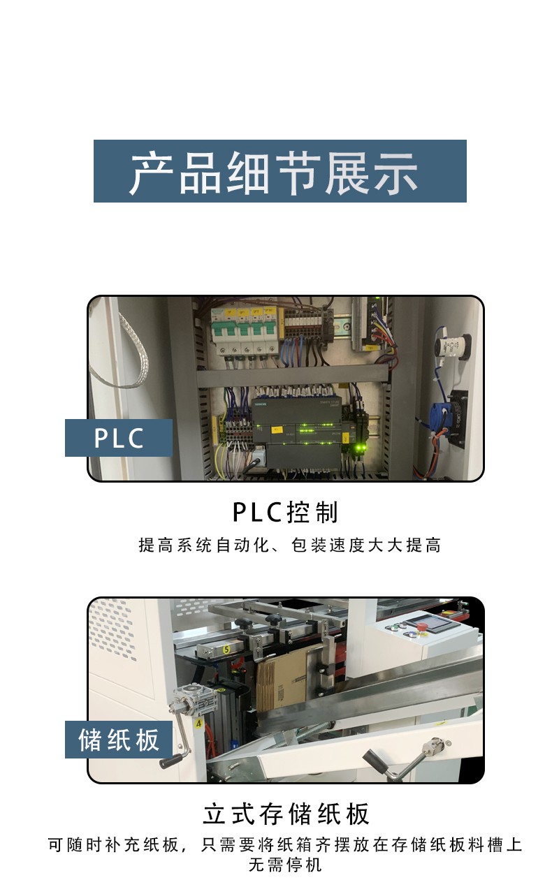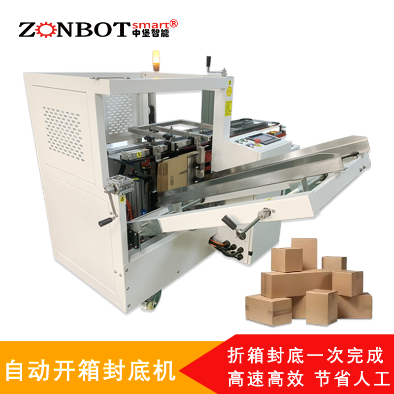 其工作流程高效流暢,利用機械或真空裝置取箱、成型,再通過折疊和粘貼(如膠帶、熱熔膠)等方式完成封底。這一設備大幅減少了人工開箱和封底的工作量,提高了包裝效率,并且可以精準地完成任務,保證紙箱的質量和密封效果。