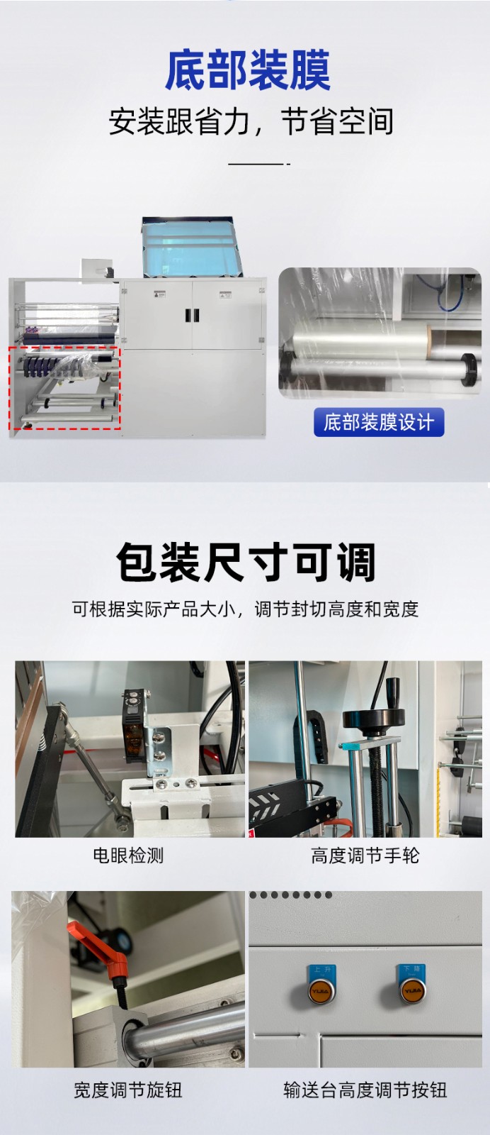 相比水平封切、半自動(dòng)收縮機(jī),全自動(dòng)垂直封切熱收縮包裝機(jī)的核心優(yōu)勢(shì)集中在 “適配性、效率、穩(wěn)定性” 三大維度: