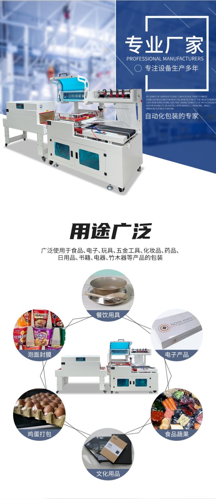 • 可適配多種包裝膜(POF 環保膜、PE 耐穿刺膜、PVC 經濟型膜),滿足不同行業需求(如食品用 POF 膜,工業件用 PE 膜);