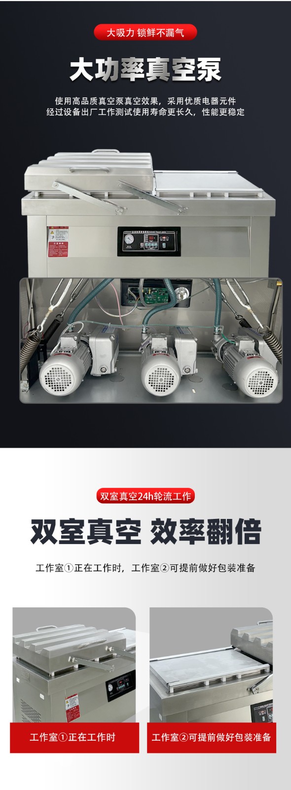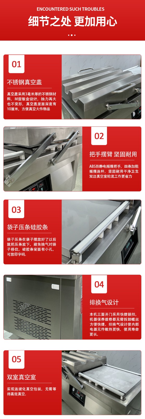 - 循環(huán)往復(fù):左室、右室始終保持 “一室抽真空密封,一室裝袋準備” 的交替狀態(tài),兩個真空室的作業(yè)周期無縫銜接,沒有任何空閑等待時間。