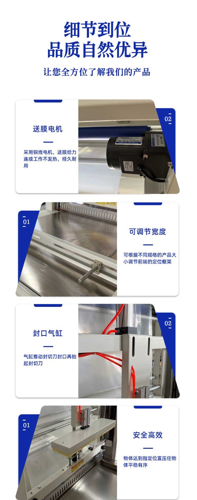 - 自動化程度高:能自動完成送料、送膜、封切、收縮、冷卻等一系列包裝工序,極大地提高了包裝效率,減少了人工成本和勞動強度3。