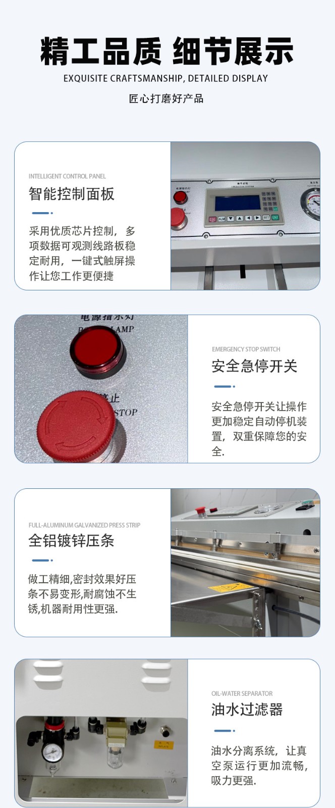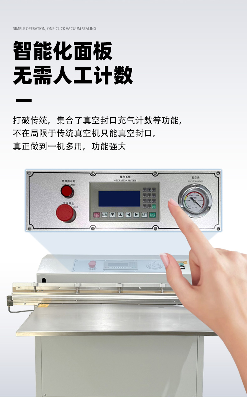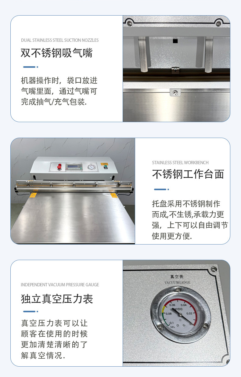 - 操作門檻低:無需頻繁調整腔體大小,只需定位袋口即可啟動,部分機型配備腳踏開關,單人即可高效操作。