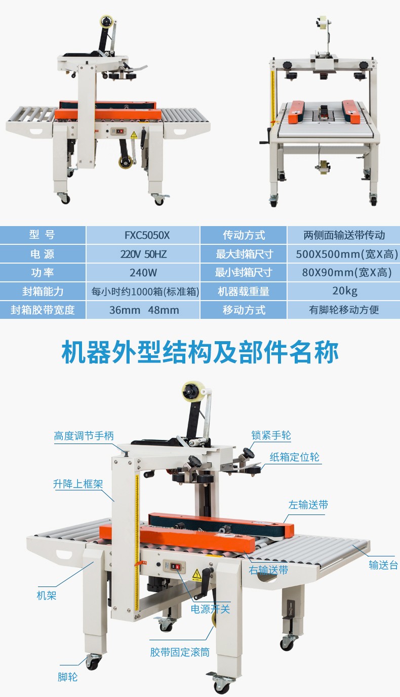 FXC5050X電商爆款1-12號小紙箱封箱機 全自動封箱機