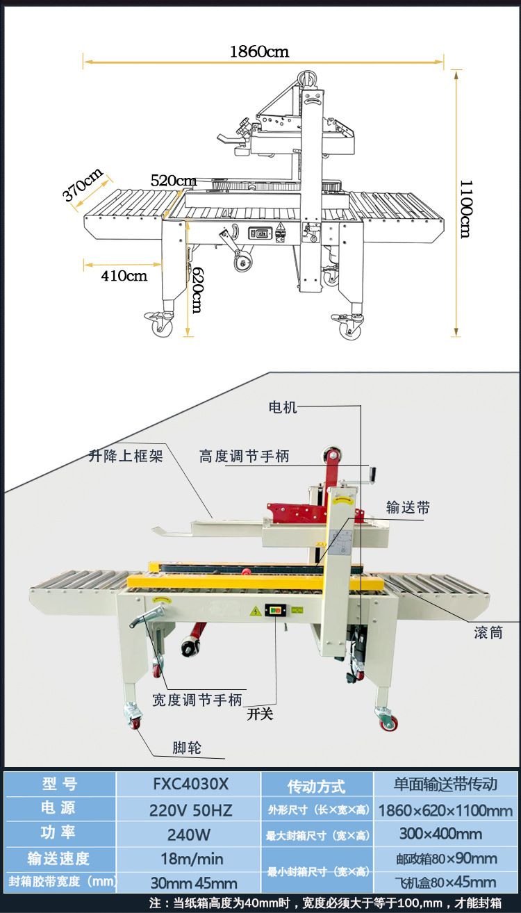 FXC4030X-飛機盒牛皮紙膠帶封箱機 自動封口機 封箱器設備封箱打包器