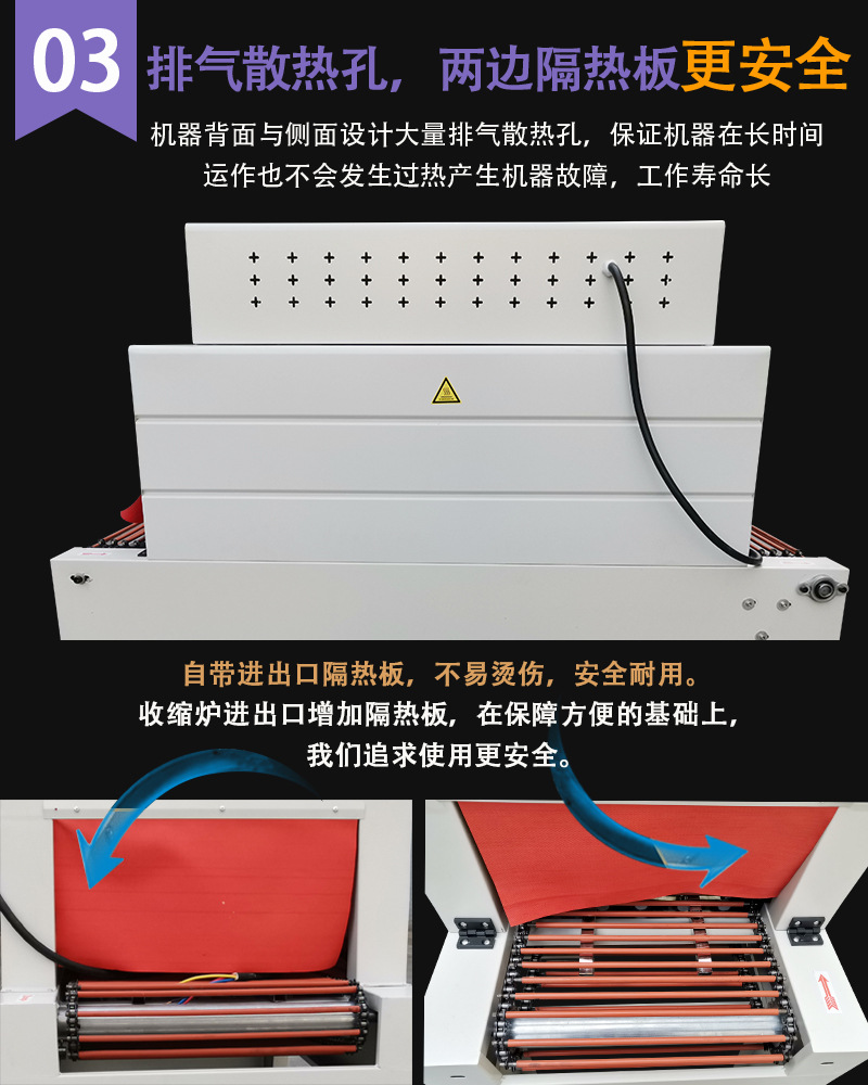 熱收縮機的工作原理很簡單,首先需要將物品放入機器內(nèi)部,然后調(diào)整好收縮溫度、收縮時間和速度等參數(shù),接下來就讓機器自動為你搞定一切吧!經(jīng)過收縮處理的物品不僅外觀更加美觀,而且可以提高物品的耐壓、耐磨性能,延長物品的使用壽命。首先,在操作熱收縮機之前,一定要確保機器的電源已經(jīng)插好,并且完好無損。其次,物品放入收縮機內(nèi)部時,要確保物品表面干凈,沒有油污等雜物,以免影響收縮效果。此外,收縮機的溫度不要調(diào)得太高,以免損壞機器。最后,注意收縮過程中不要拉動物品,以免導致物品變形。