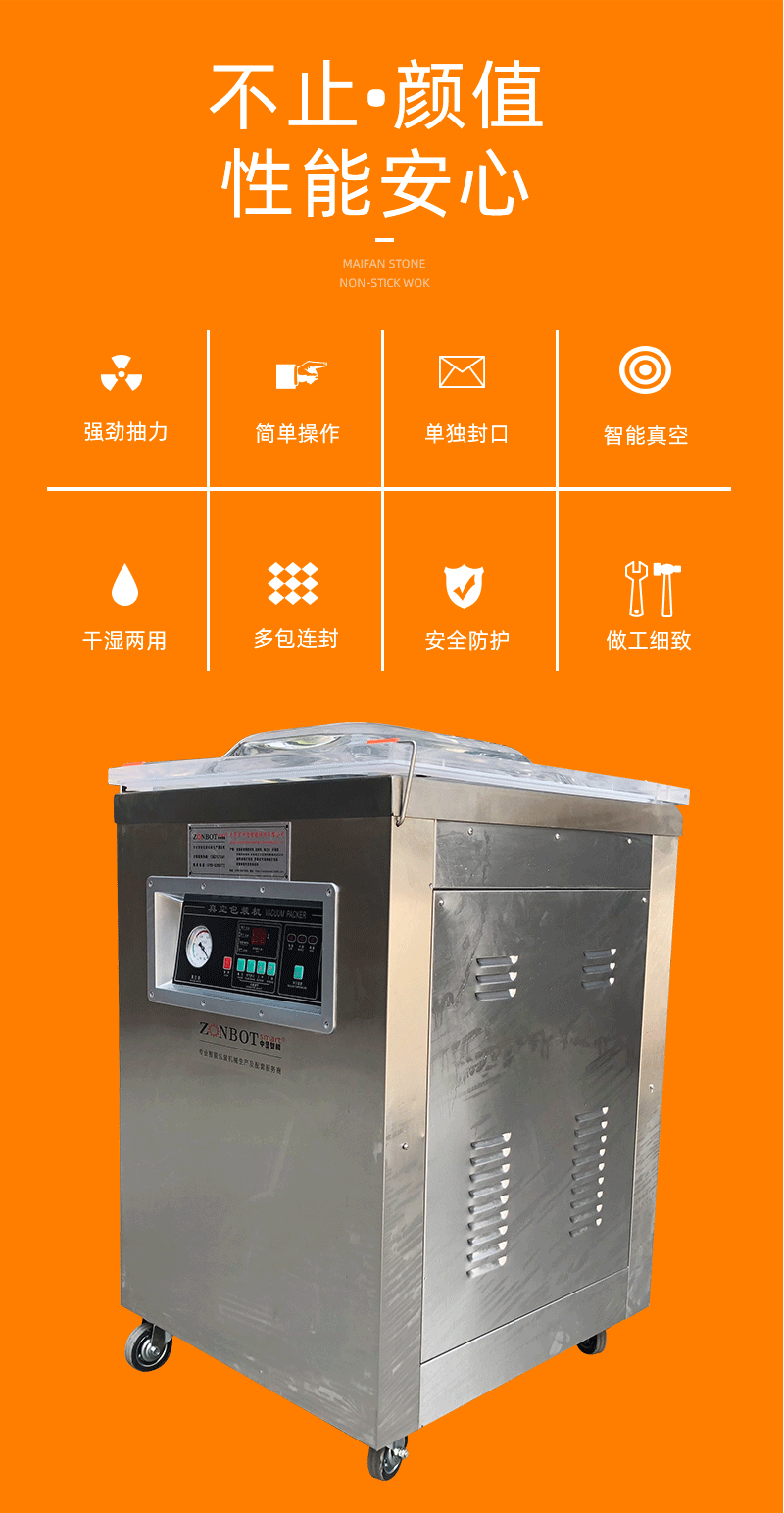 主要應用于同時需要抽真空及壓送氣體的場合,特別適用于易燃、易爆氣體的抽取和壓送及用于壓縮包裝羽絨被服、太空棉被服、枕頭等蓬松的物品,可縮小包裝空間及防潮防塵,降低儲藏及運輸費用。 相關信息 播報 編輯 真空包裝機包括食品真空包裝機都是由真空系統、抽充氣密封系統、熱壓封合系統、電器控制系統等組成。外抽式真空包裝機是將包裝袋內抽成低真空后,當即自動封口,由于袋內真空度高,殘留空氣極少,抑制細菌等微生物的繁殖,避免了物品氧化、霉變和腐敗