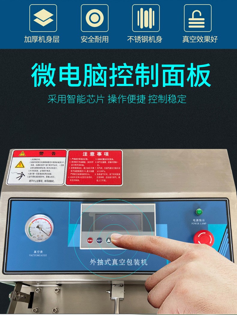 真空包裝機(jī)能夠自動(dòng)抽出包裝袋內(nèi)的空氣,達(dá)到預(yù)定真空度后完成封口工序。亦可再充入氮?dú)饣蚱渌旌蠚怏w,然后完成封口工序。真空包裝機(jī)常被用于食品行業(yè),因?yàn)榻?jīng)過真空包裝以后,食品能夠抗氧化,從而達(dá)到長期保存的目的。