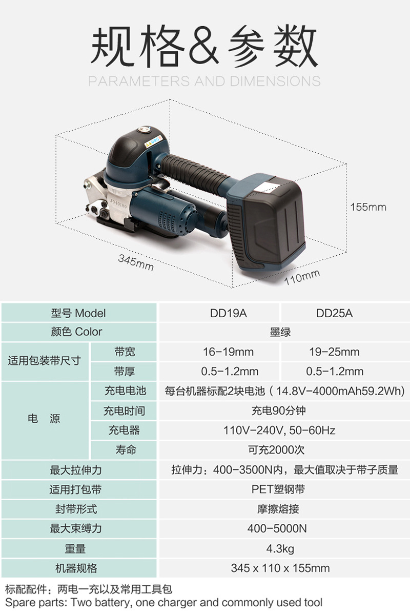 DD19A手提式電動打包機大拉力熱熔全自動PET塑鋼帶打包機磚廠專用