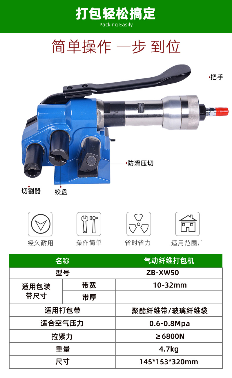 XW50手持式打捆機聚酯纖維打包帶包裝機械 設備氣動纖維帶打包機