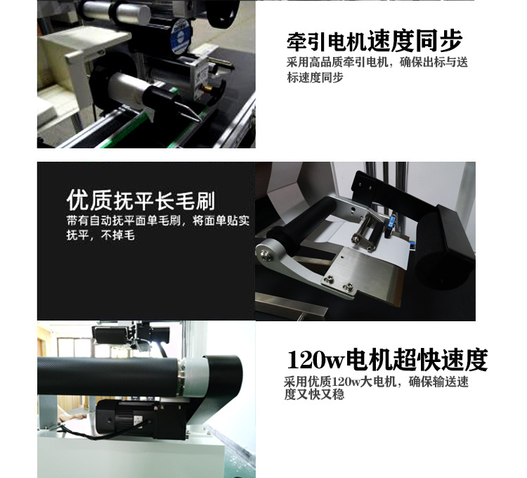 側面類貼標機實現在工件的側平面、側弧面貼標或貼膜,如化妝品扁瓶、方盒等,可配套圓瓶覆標設備,同時實現圓瓶貼標。