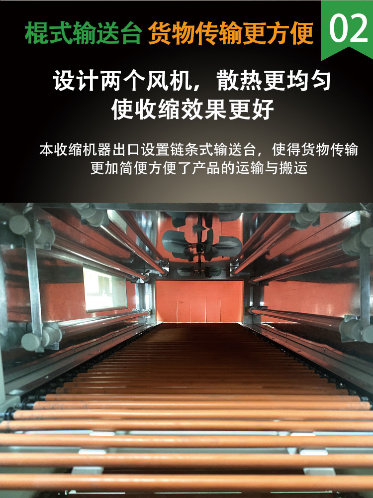 熱收縮機主要有兩種加熱方式,一種是通過熱風循環加熱,另一種是通過紅外線加熱。熱風循環加熱方式能夠均勻地加熱整個包裝區域,而紅外線加熱則具有快速升溫、高效節能的特點。